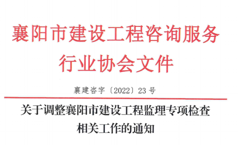 襄建咨字〔2022〕23号关于调整襄阳市建设工程监理专项检查相关工作的通知