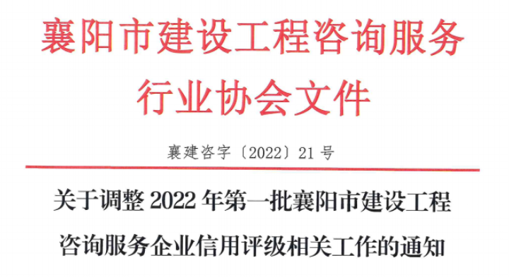 襄建咨字〔2022〕21号关于调整2022年第一批襄阳市建设工程咨询服务企业信用评级相关工作的通知