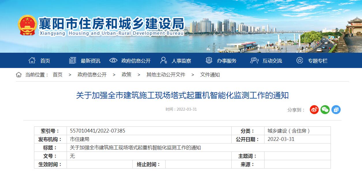 关于加强全市建筑施工现场塔式起重机智能化监测工作的通知