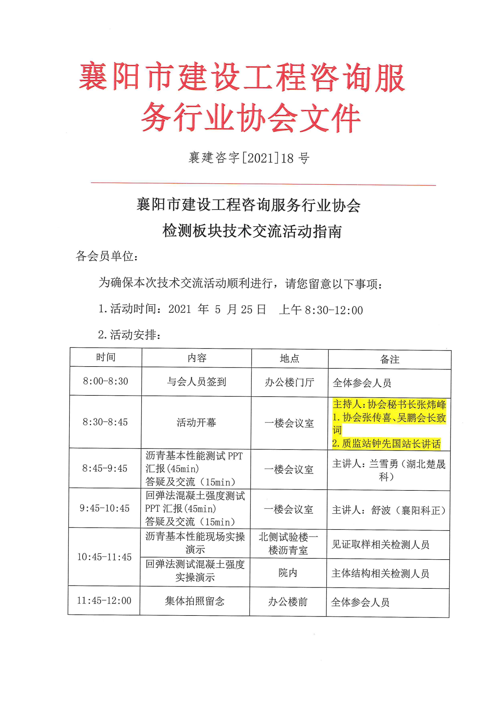 襄建咨字[2021]18号 襄阳市建设工程咨询服务行业协会检测板块技术交流活动指南