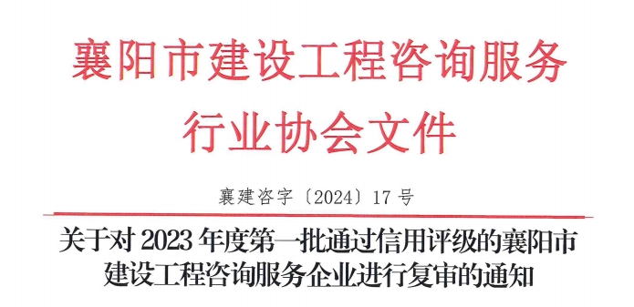 关于对 2023年度第一批通过信用评级的襄阳市建设工程咨询服务企业进行复审的通知
