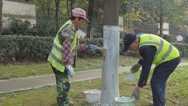 市绿化处开展冬季大树刷白工作