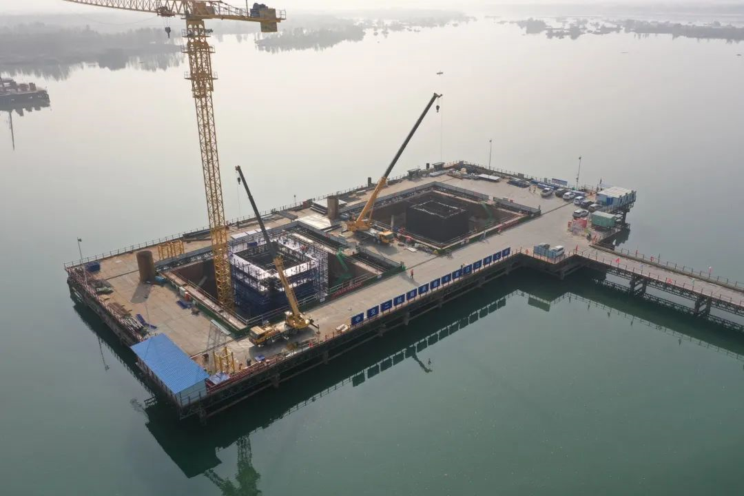 牛首汉江特大桥全长4454米,主桥长660米,“H”型主塔高200米,建成后将是国内最大跨径无辅助墩组合梁独塔斜拉桥。为保证主墩塔柱顺利“出水”,项目部提前谋划、科学统筹,对支架模板组合、钢筋及预埋件施工、大体积混凝土浇筑顺序等技术、质量、安全控制要点进行了梳理,对每一道施工工序做了细致安排部署,精心组织施工,严把现场安全及浇筑质量。