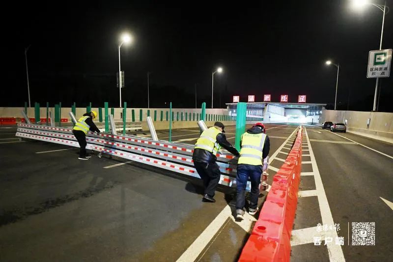“我们先封闭两侧的入口,通过视频监控确认隧道内没有车辆行驶后,再封闭出口。”中交二航局襄阳项目公司运维部部长刘冰说,隧道封闭采用水马和反光挡板两道护栏,并在出入口前方红绿灯路口设置醒目标语,便于车辆驾驶人提前调整行车路线。
