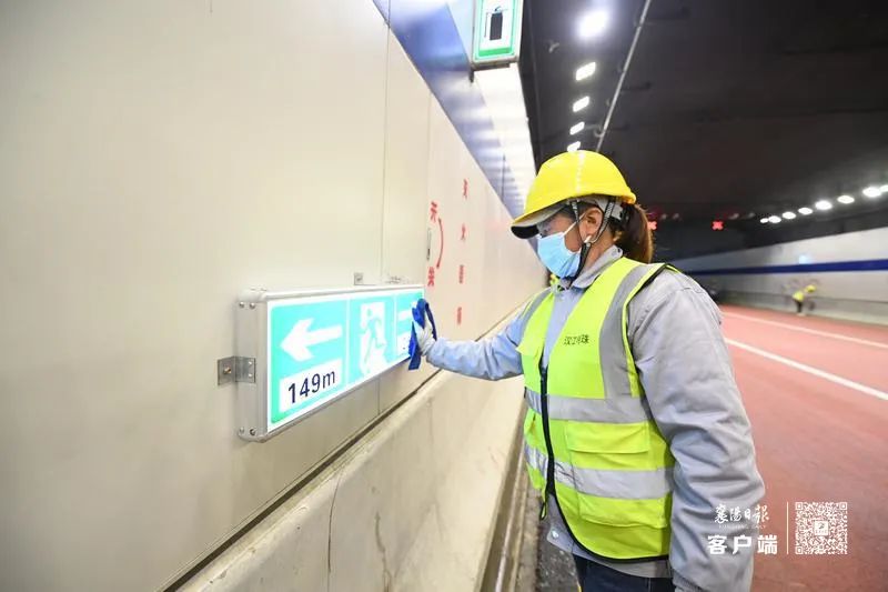 “不只是扫扫地这么简单。”刘冰告诉记者,因为隧道内每天车来车往,会产生很多灰尘和尾气,他们需要清洗隧道的墙壁和电光标识,“如果不及时清理装饰板和电光标识上的灰尘,不仅不美观,亮度也会受影响。”