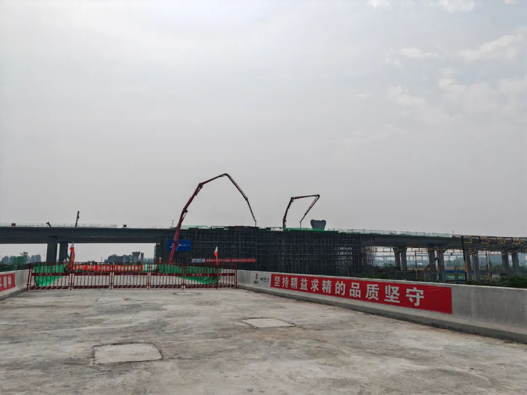5月19日,环线提速改造二期工程(东津立交)东线跨越南线立交桥主体混凝土箱梁全部浇筑完毕,该层立交即将合龙。整个项目预计在今年十月底具备通车条件。