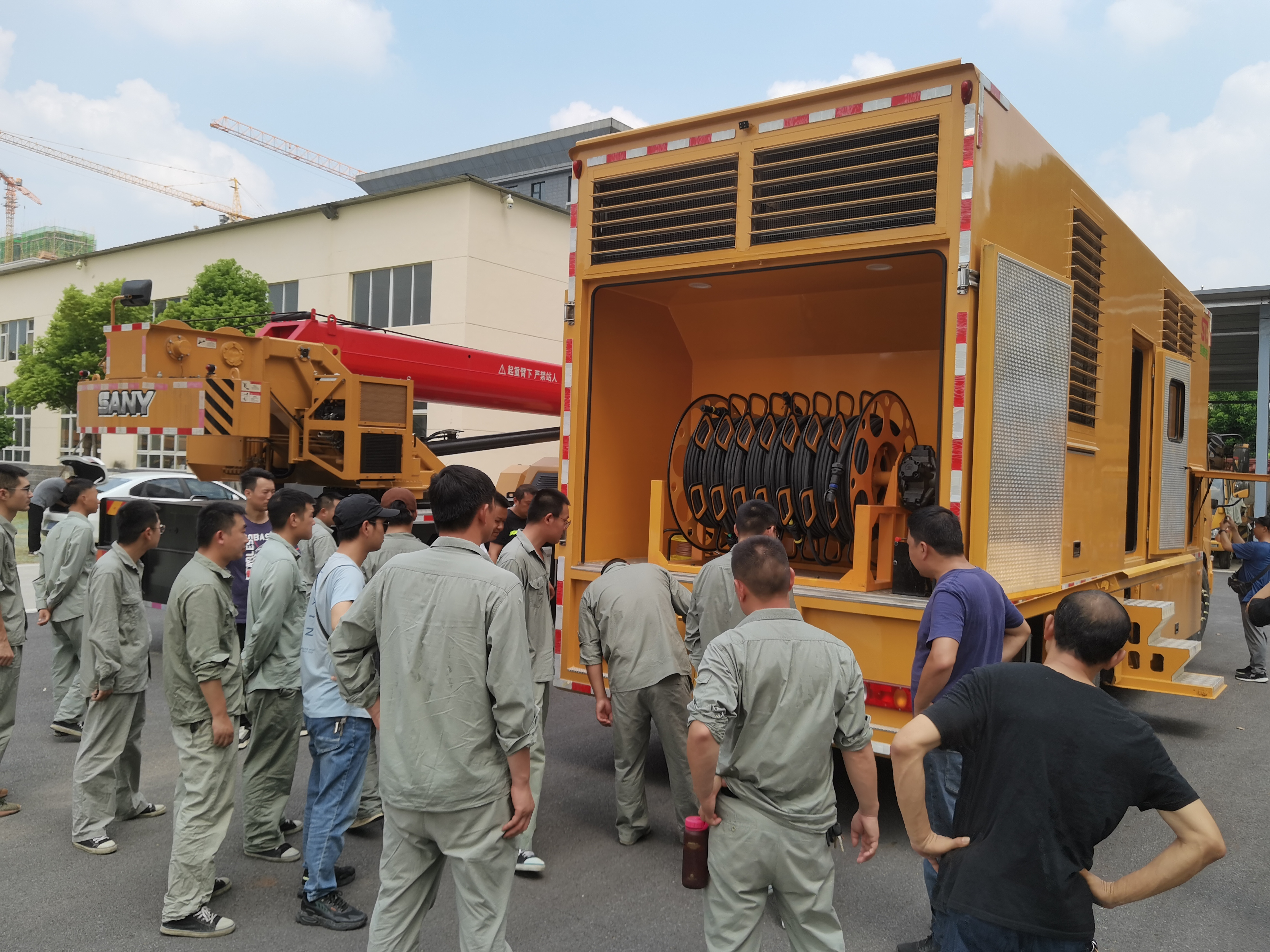 在培训现场,讲解师傅按照标准操作流程逐一对16吨汽车起重机和应急发电车进行讲解,重点对起重机和发电车的各项启动准备、各仪表开关作用、日常维护注意事项等作了说明,清晰明了。同时对参训人员反复强调要把操作和管理放在第一位,认真做好日常保养工作,降低事故风险,消除安全隐患。最后,在讲解师傅的指导下,各参训人员在现场轮流进行了实操。