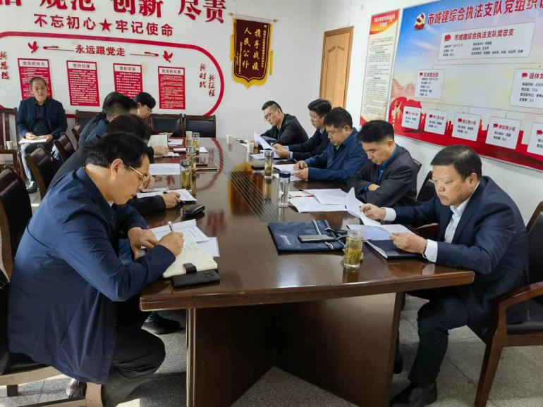 10月13日上午,市住建局党组书记、局长陈建斌,市住建局党组成员、总工程师陈义运及局办公室、人事科、建筑业科负责人一行到市城建综合执法支队调研建筑行业5家单位,城建支队、墙革办、职工学校、造价站和建科院主要负责人分别汇报工作情况,局机关科室提出意见,陈义运进行点评。