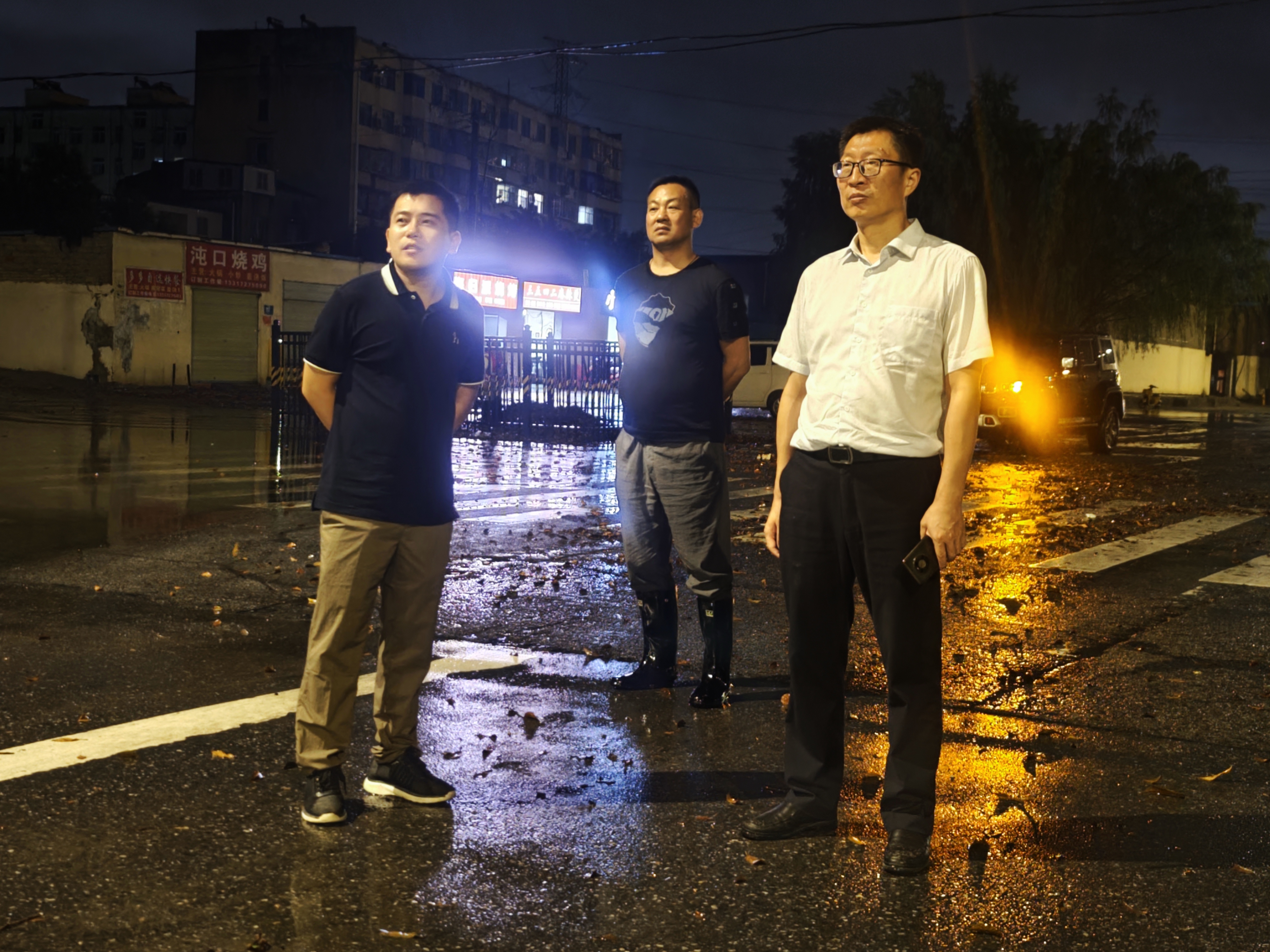 局党组成员、副局长章成强冒雨巡查重点路段积水和路灯安全隐患排查情况