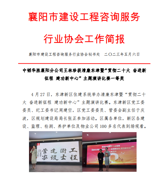 中韬华胜襄阳分公司王林珍获清廉东津暨“贯彻二十大 奋进新征程 建功新中心”主题演讲比赛一等奖