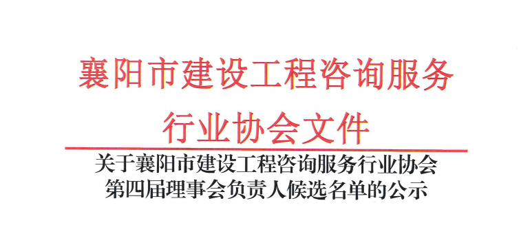 关于襄阳市建设工程咨询服务行业协会 第四届理事会负责人候选名单的公示