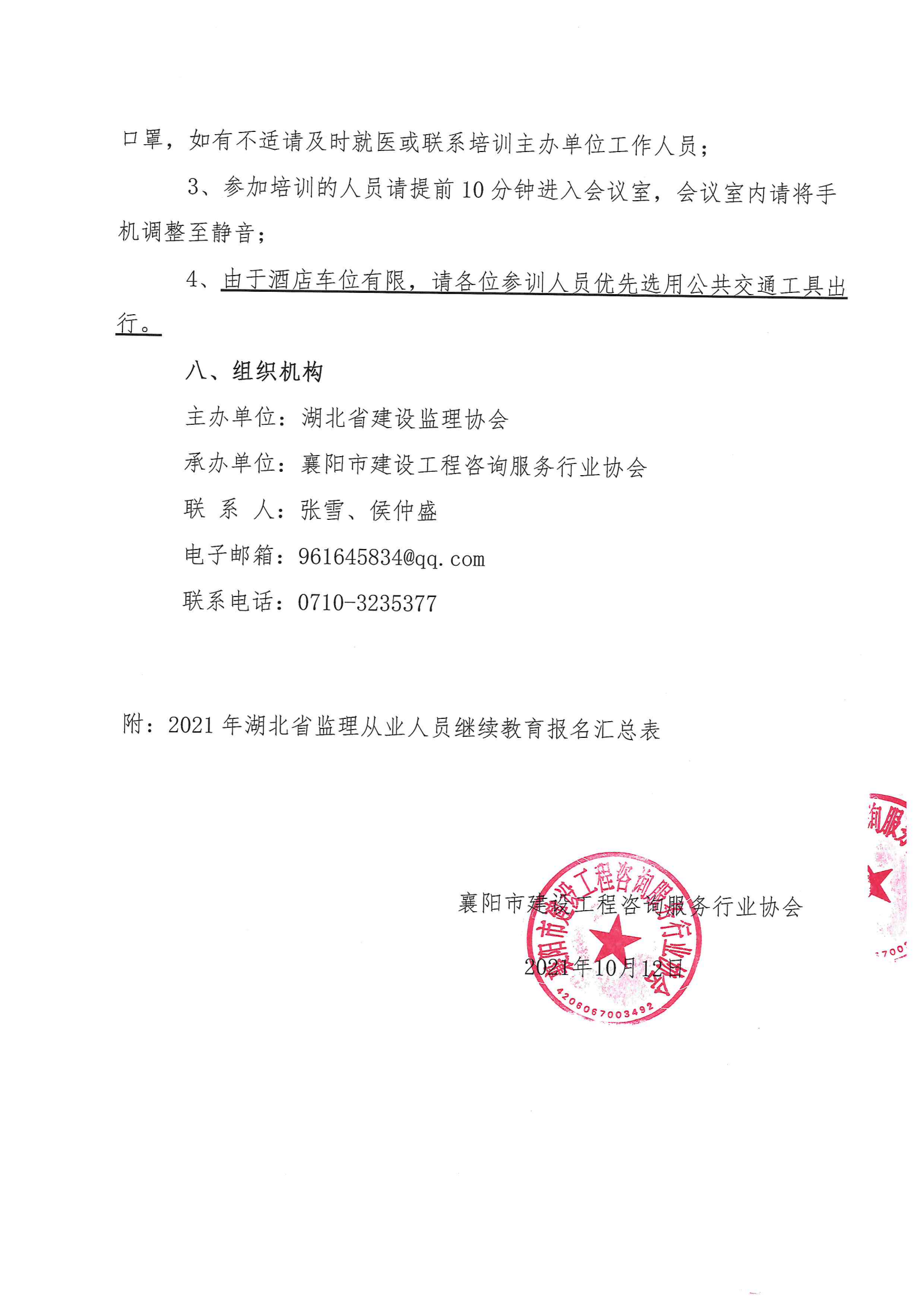襄建咨字[2021]22号关于开展襄阳建设工程监理从业人员继续教育的通知
