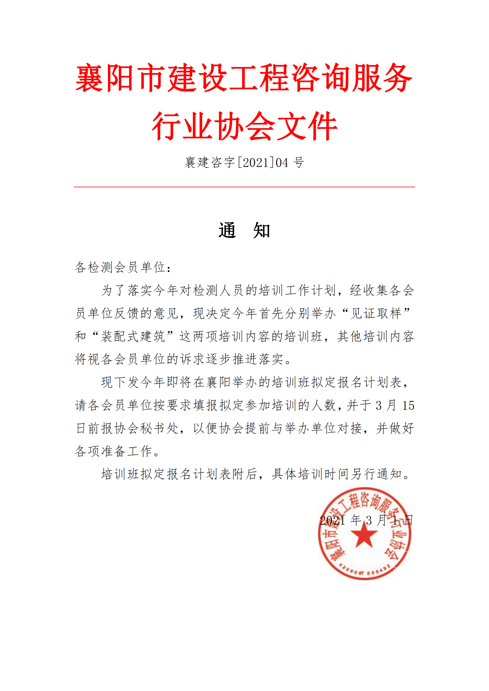 襄建咨字【2021】04号检测通知