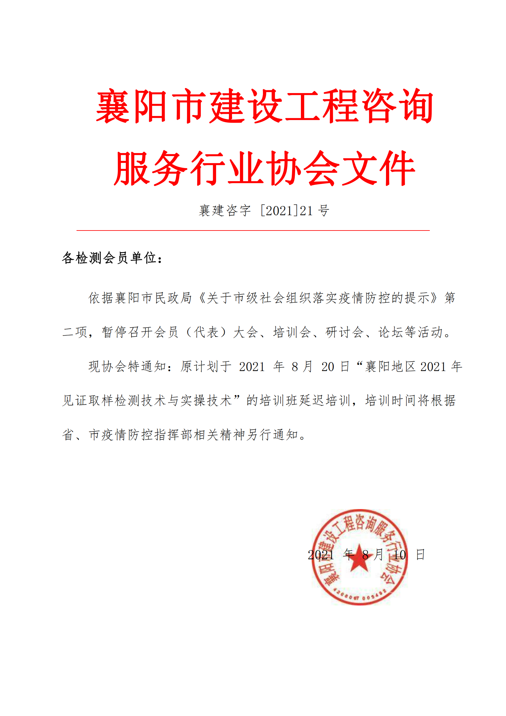 襄建咨字【2021】21号关于2021年度襄阳市建设工程质量检测培训延迟通知