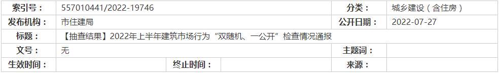 为进一步加强我市建筑市场监管,根据《襄阳市市场监管领域2022年部门联合“双随机、一公开”抽查工作计划》(襄双随机办[2022]1号)文件要求,2022年6月我局开展了2022年上半年建筑市场行为“双随机、一公开”联合检查工作,现将检查情况通报如下: