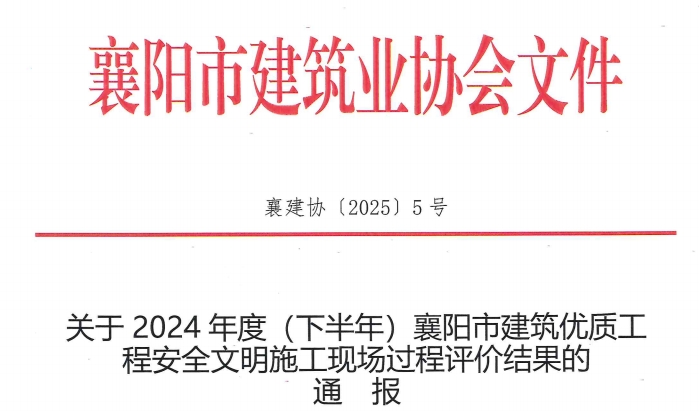 关于 2024 年度(下半年)襄阳市建筑优质工程安全文明施工现场过程评价结果的通报