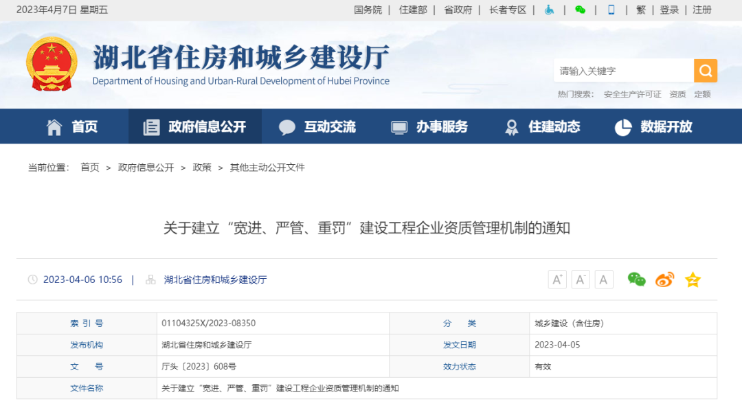 湖北:4月15日起,对建筑资质进行宽进、严管、重罚!
