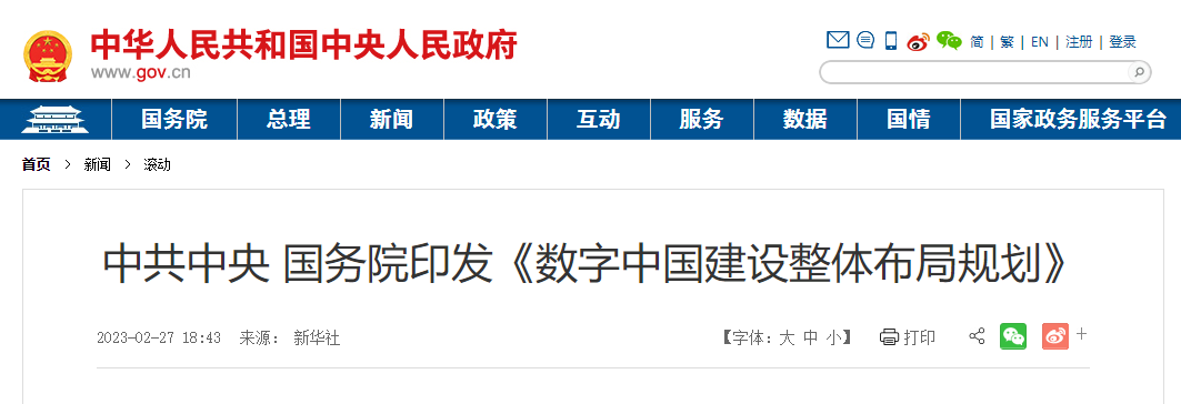重磅!数字中国建设迎顶层规划!中共中央 国务院印发→