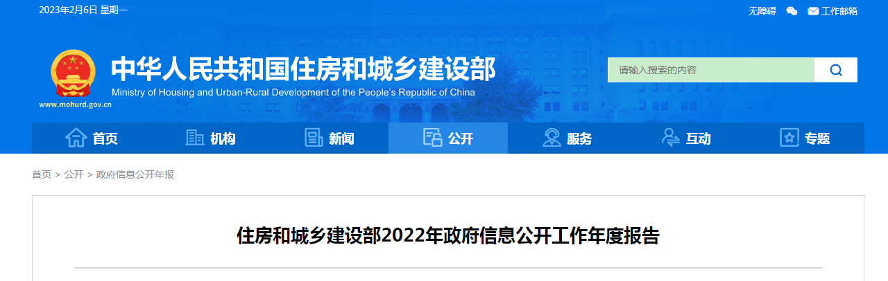 住房和城乡建设部2022年政府信息公开工作年度报告来了!