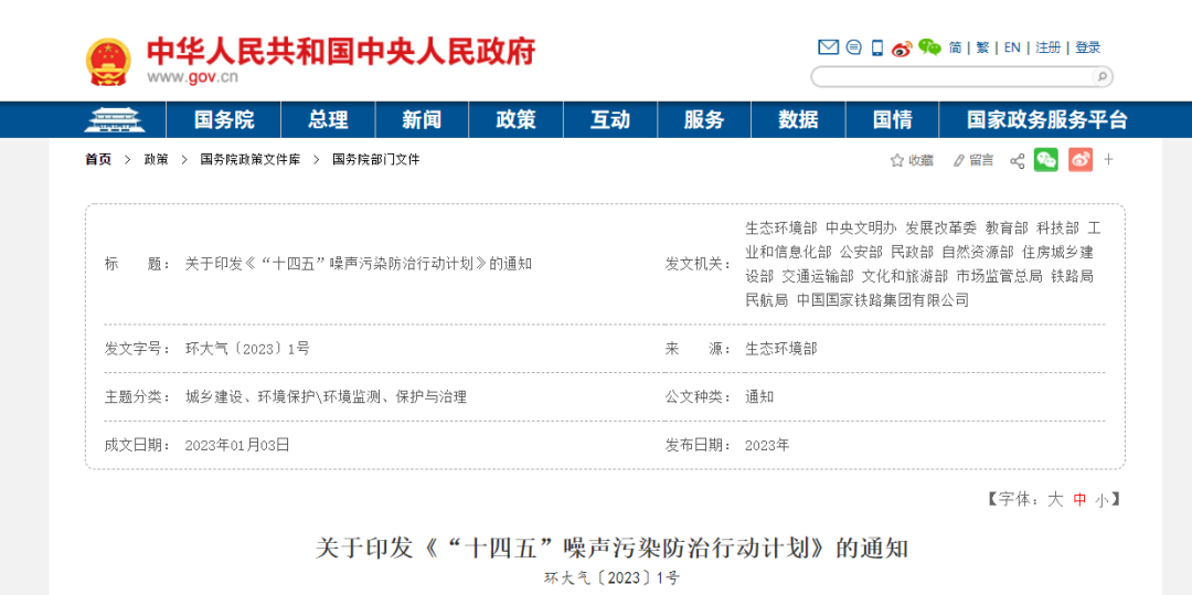 16部门联合印发《“十四五”噪声污染防治行动计划》!