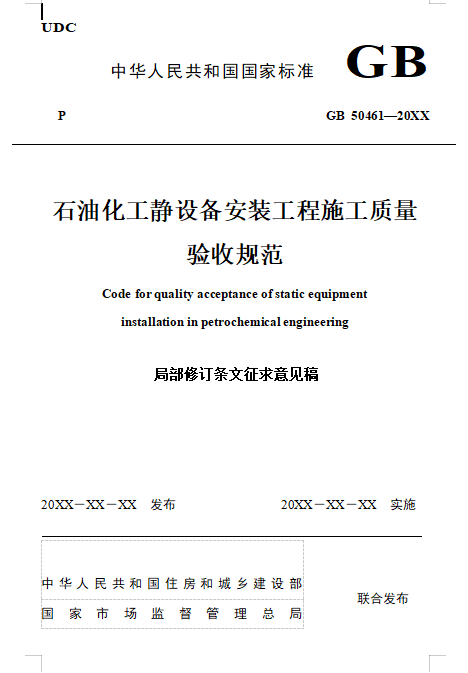 《石油化工静设备安装工程施工质量验收规范(局部修订条文征求意见稿)》