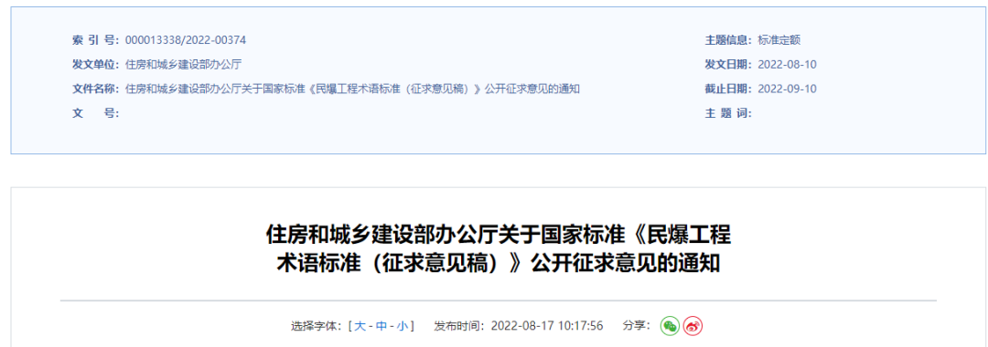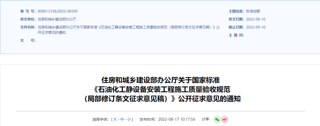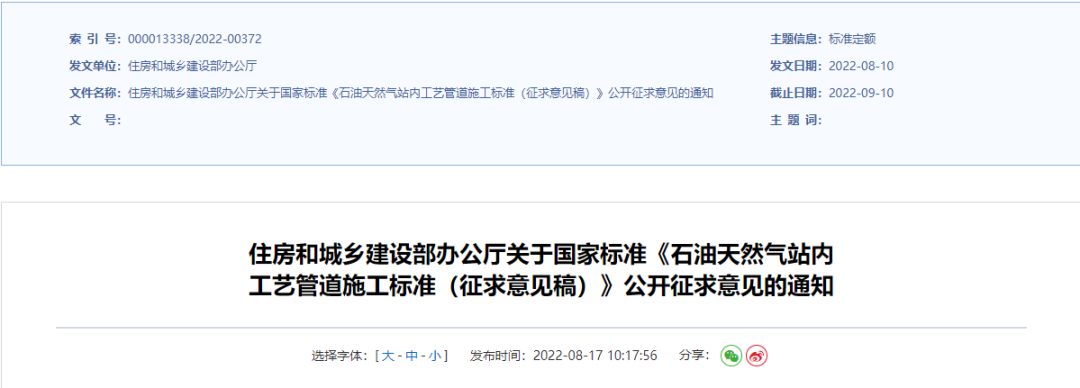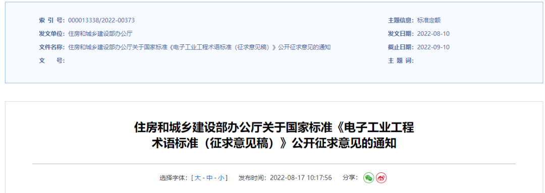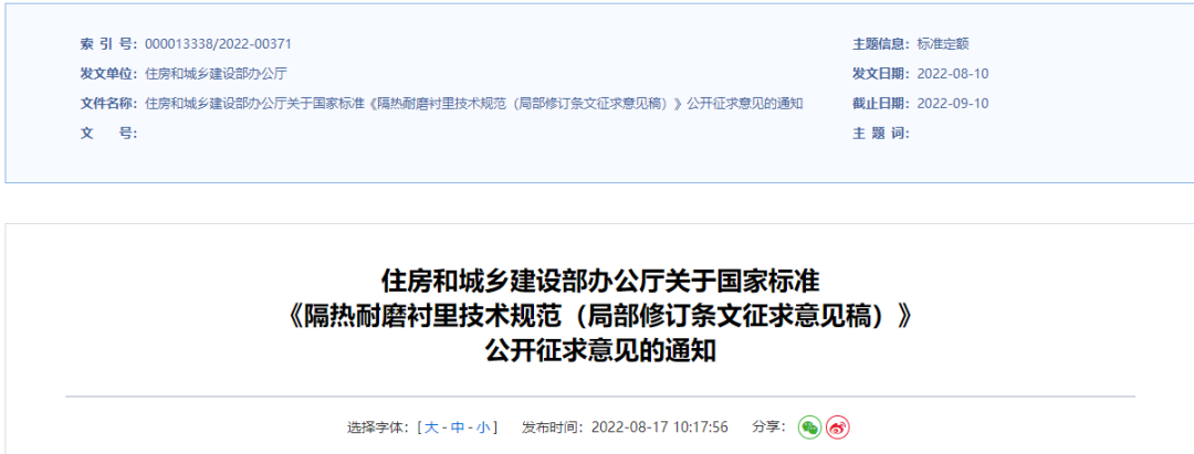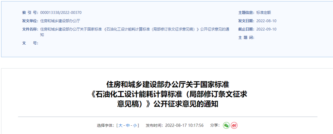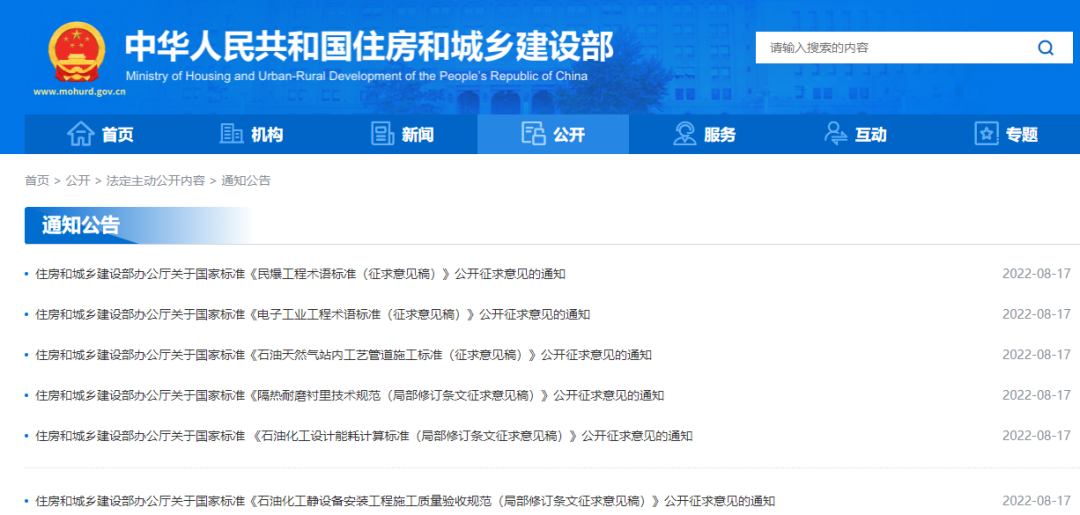 8月17日,住建部发布6项国家标准公开征求意见的通知,截止时间为2022年9月10日。