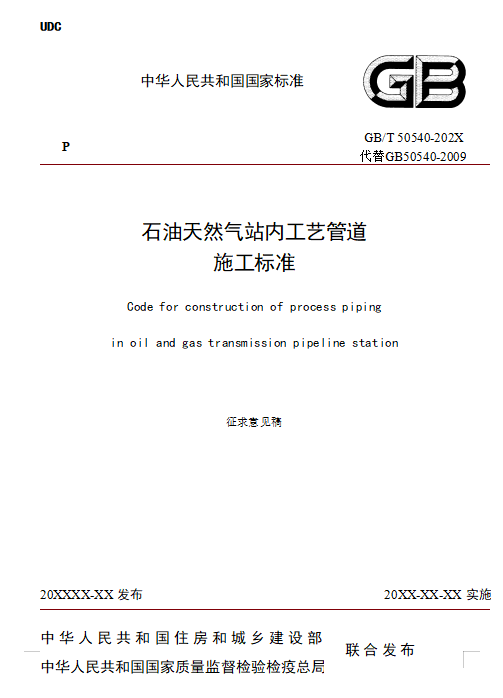 《石油天然气站内工艺管道施工标准(征求意见稿)》