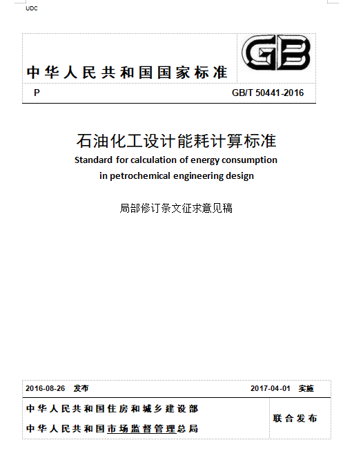 《石油化工设计能耗计算标准(局部修订条文征求意见稿)》