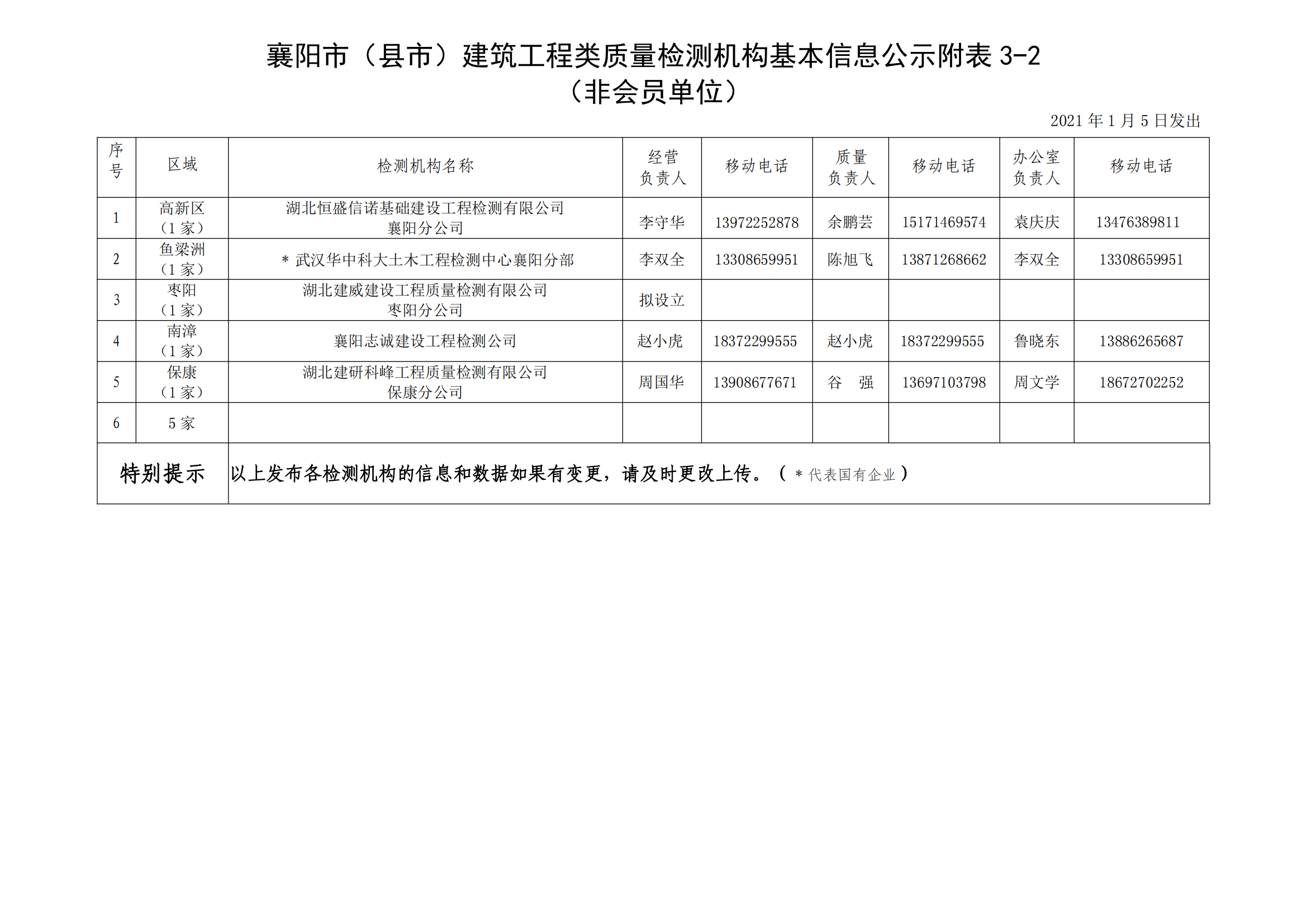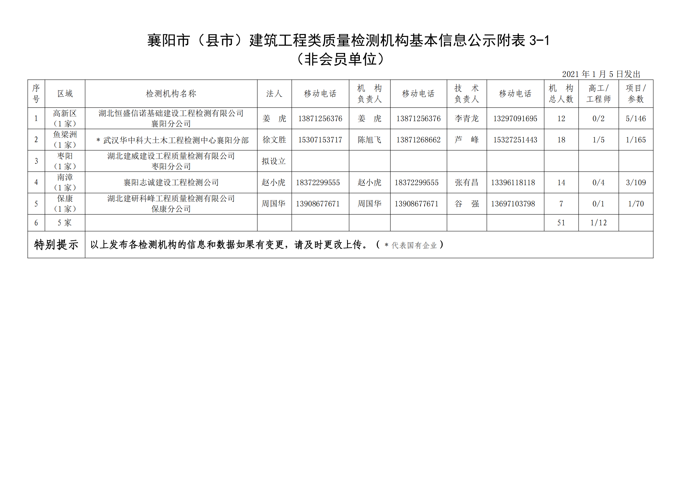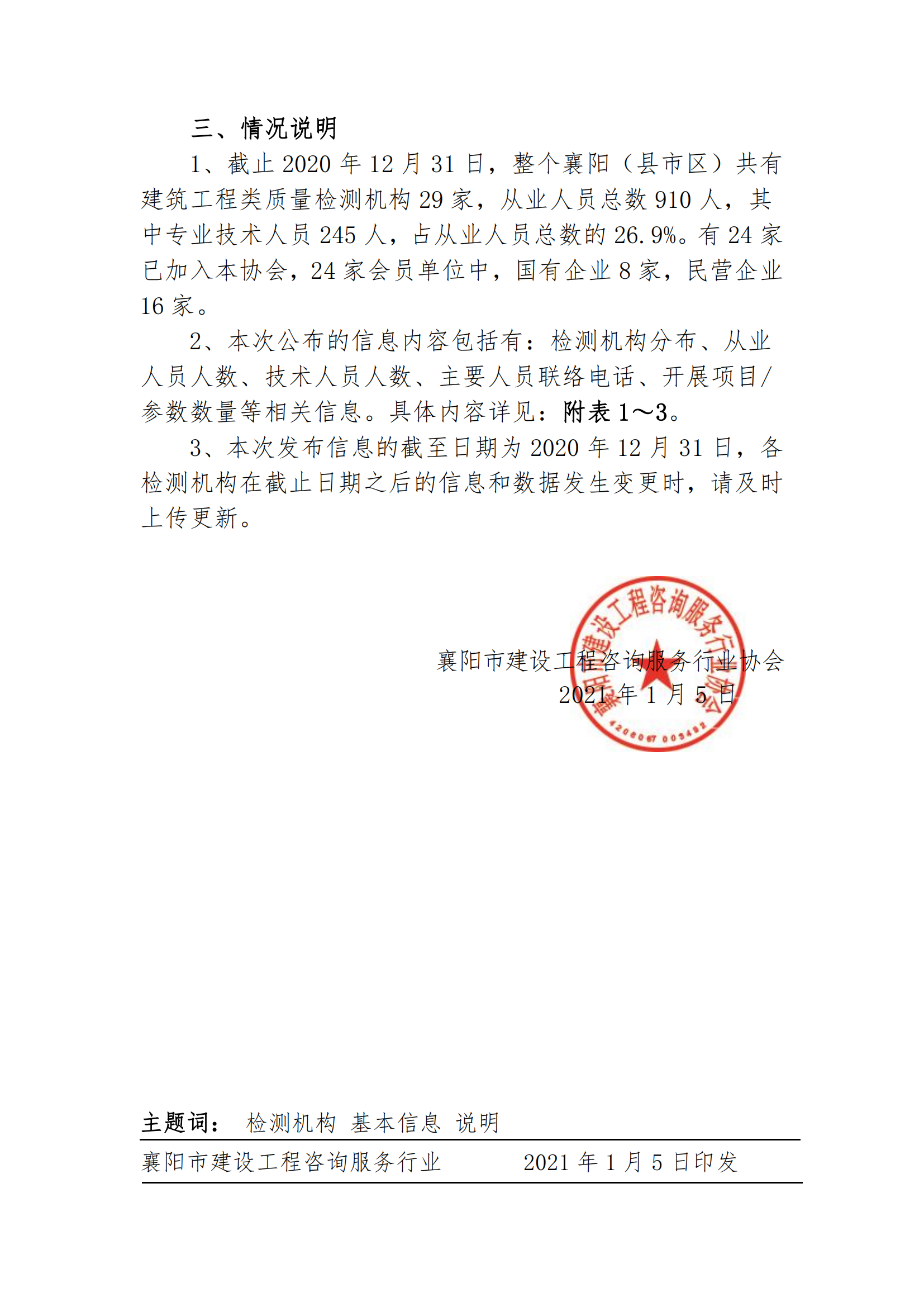 襄建咨字【2021】01号建筑工程类质量检测机构基本信息公示说明及附表
