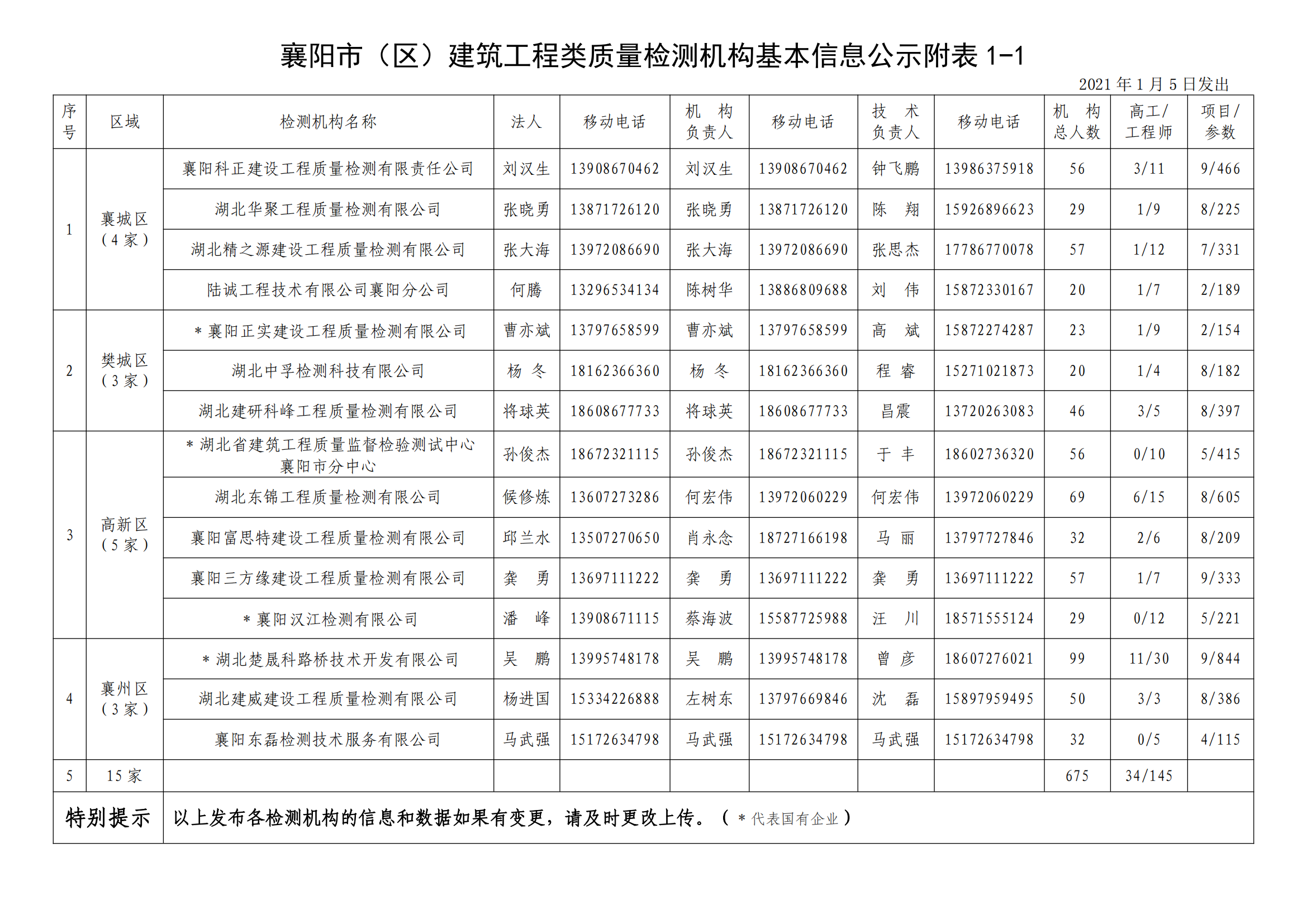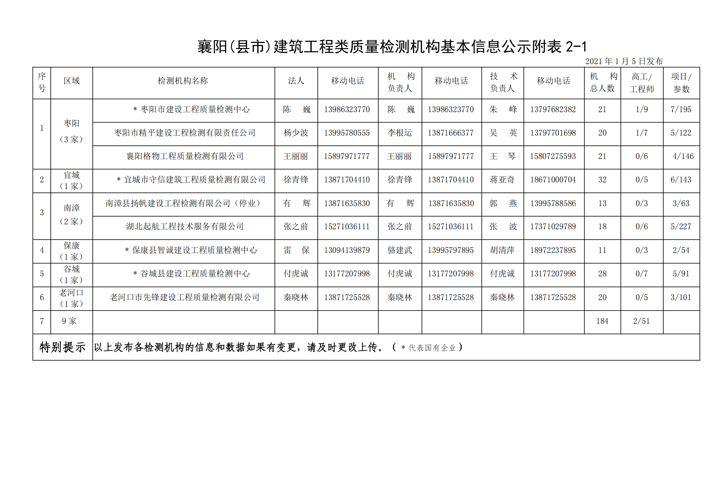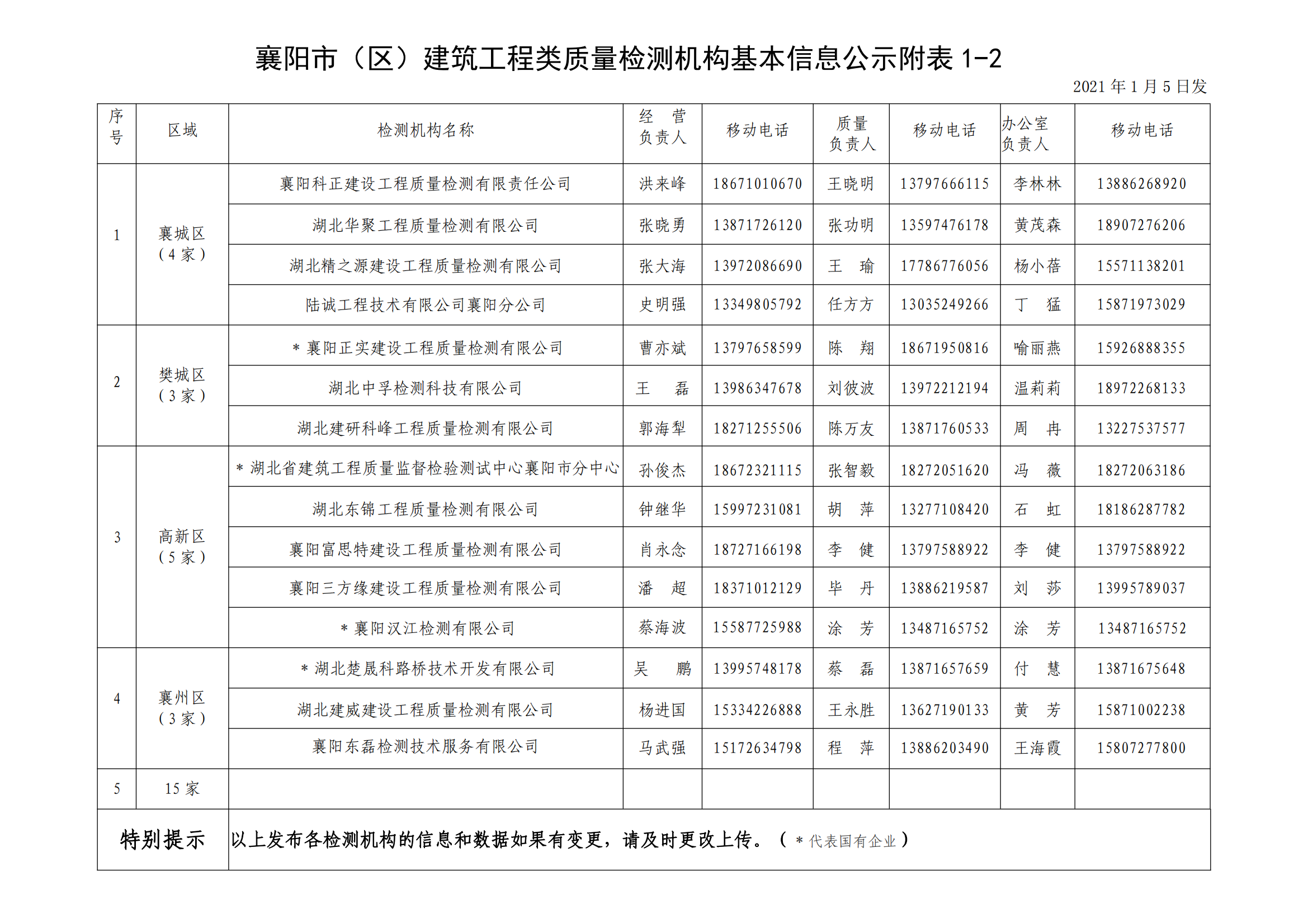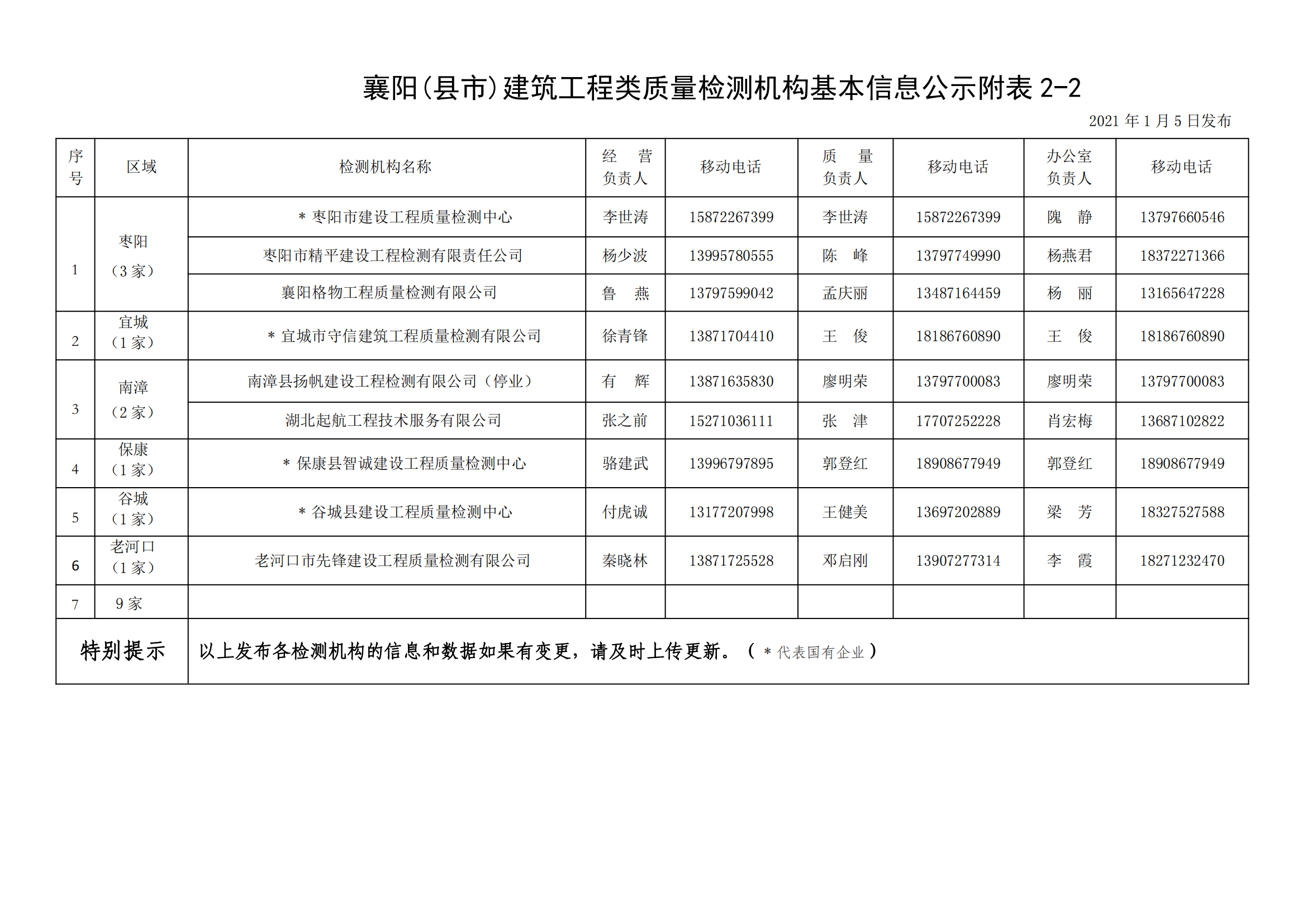 襄建咨字【2021】01号建筑工程类质量检测机构基本信息公示说明及附表