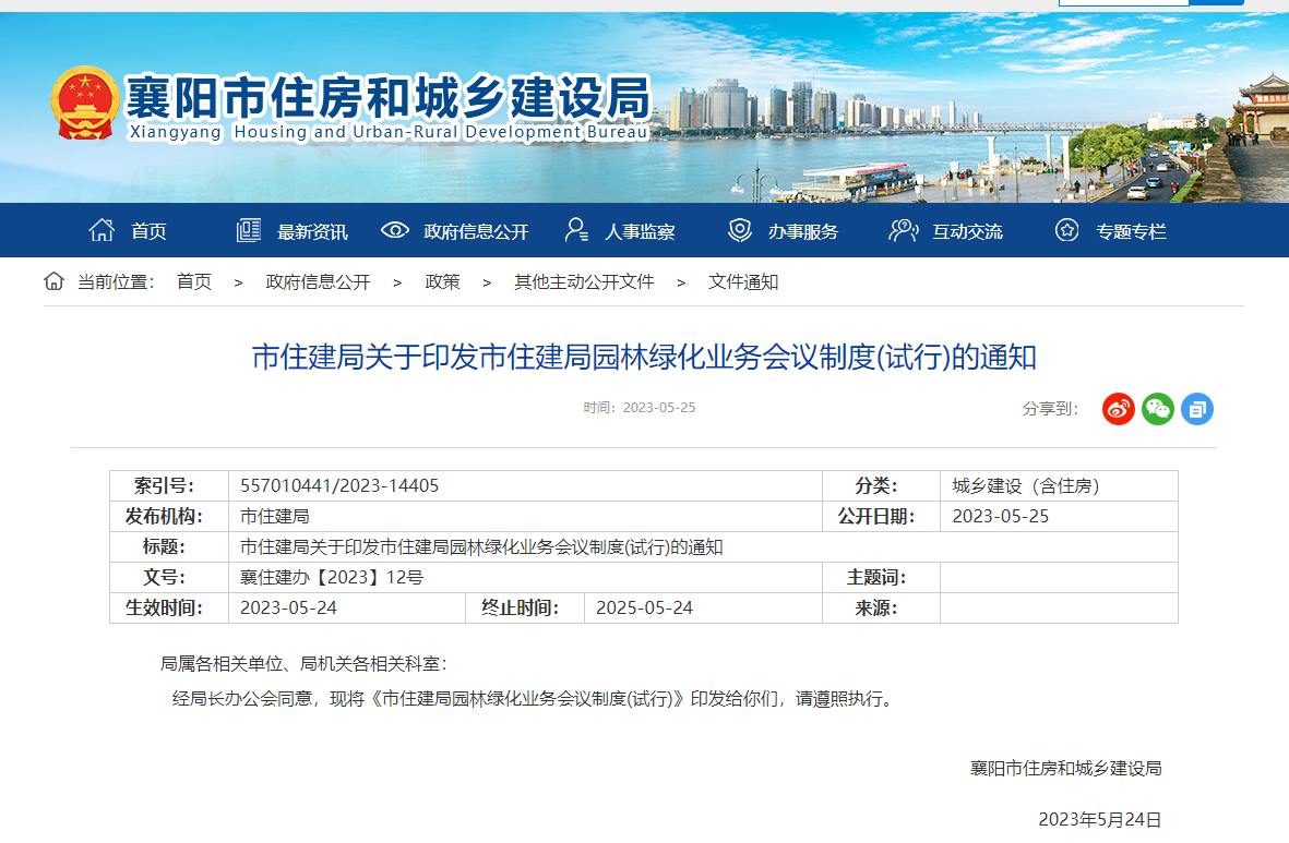 市住建局关于印发市住建局园林绿化业务会议制度(试行)的通知