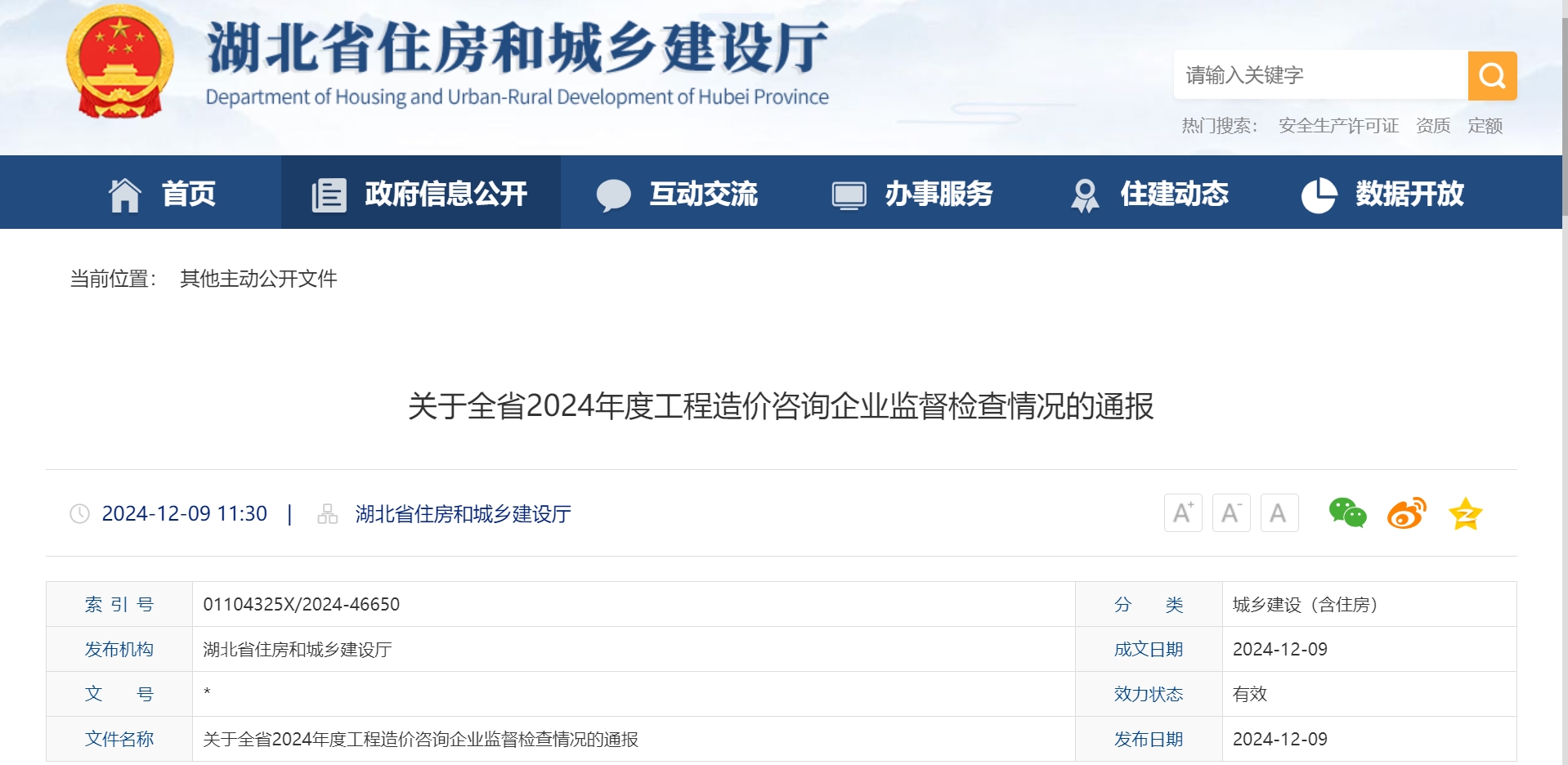 关于全省2024年度工程造价咨询企业监督检查情况的通报