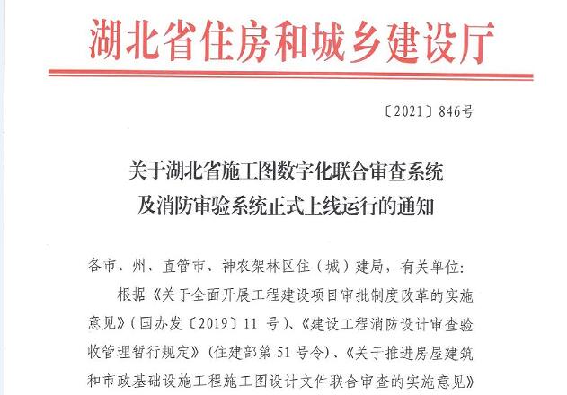 关于湖北省施工图数字化联合审查系统及消防审验系统正式上线运行的通知