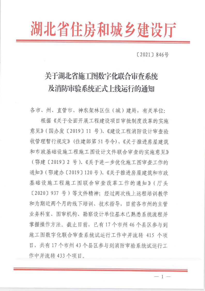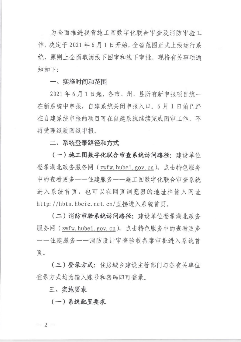 关于湖北省施工图数字化联合审查系统及消防审验系统正式上线运行的通知